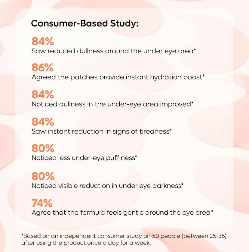 - Maximize the potency of our Eye Patches with a healthy lifestyle. How? Prioritize 7-8 hours of sleep and stay hydrated for brighter & even-toned under eyes. Pair these Under Eye Patches with lifestyle changes for impressive results!